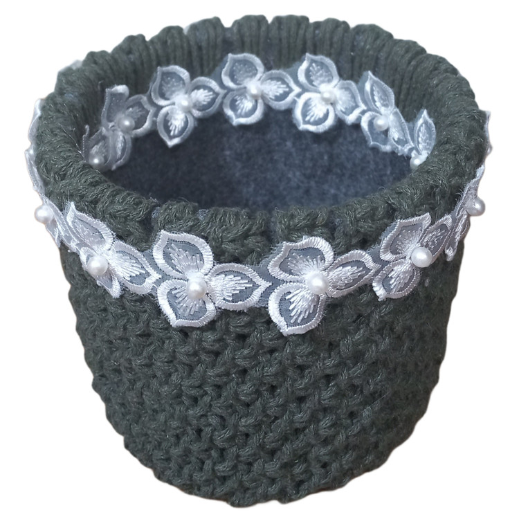 سبد یا باکس مکرومه همه کاره با رنگ سبز سدری با بافتی محکم و منسجم