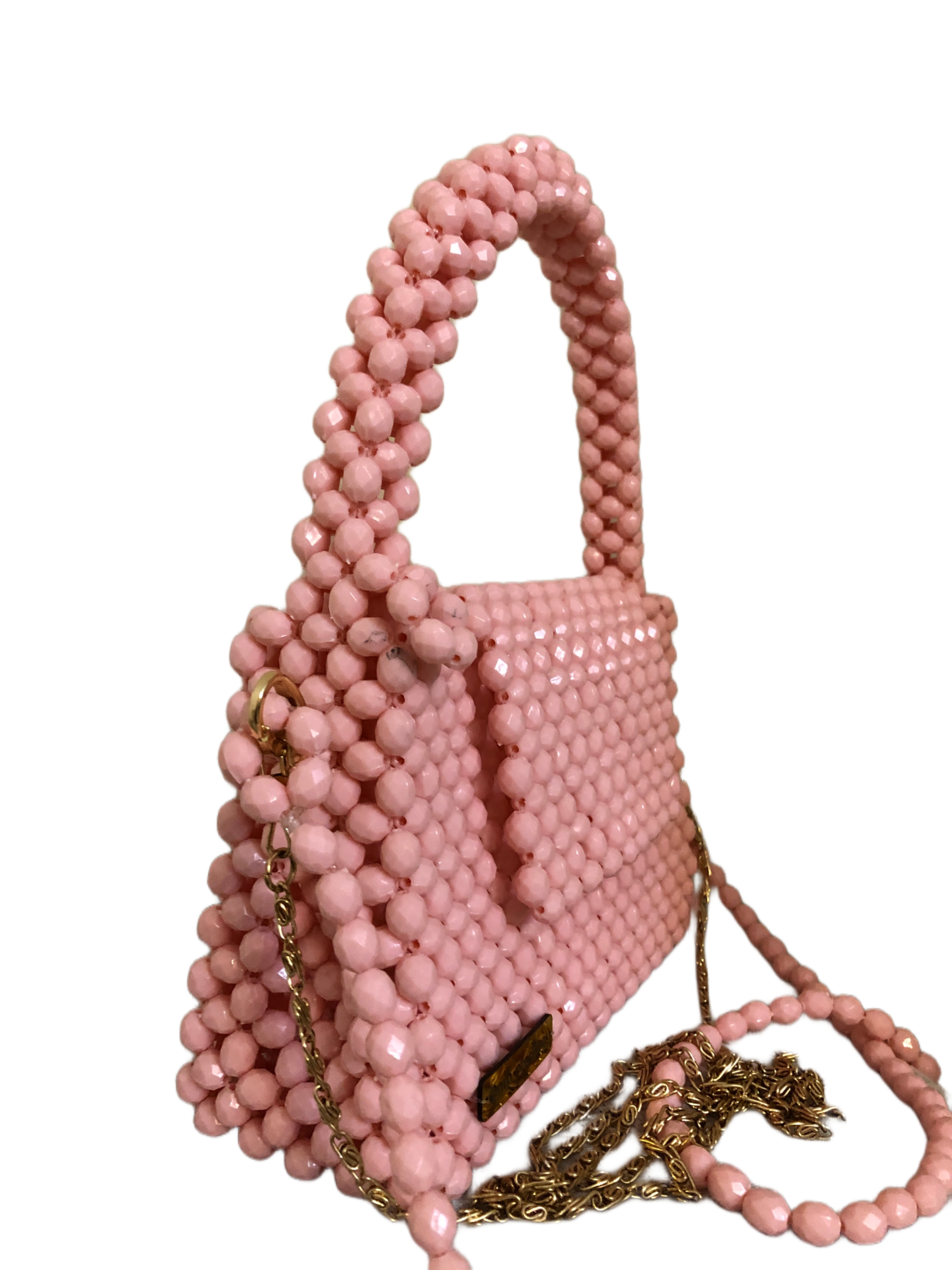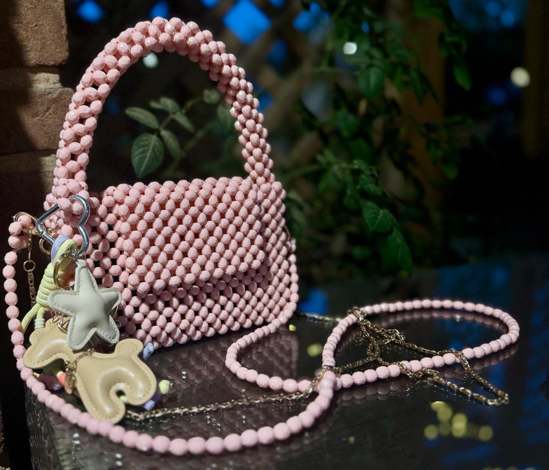 کیف دخترانه مهره ایی چند ضلعی صورتی_پلیمری