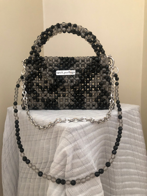 بافته شده با کریستال ایرانی جنس خوب/ دارای سه دسته مجزا برای کارایی بیشتر و راحتی در نگهداری کیف/کف کیف 3 سانت می باشد و مناسب کارت بانکی و ایرپاد و کلید و وسایل کوچک مشابه
