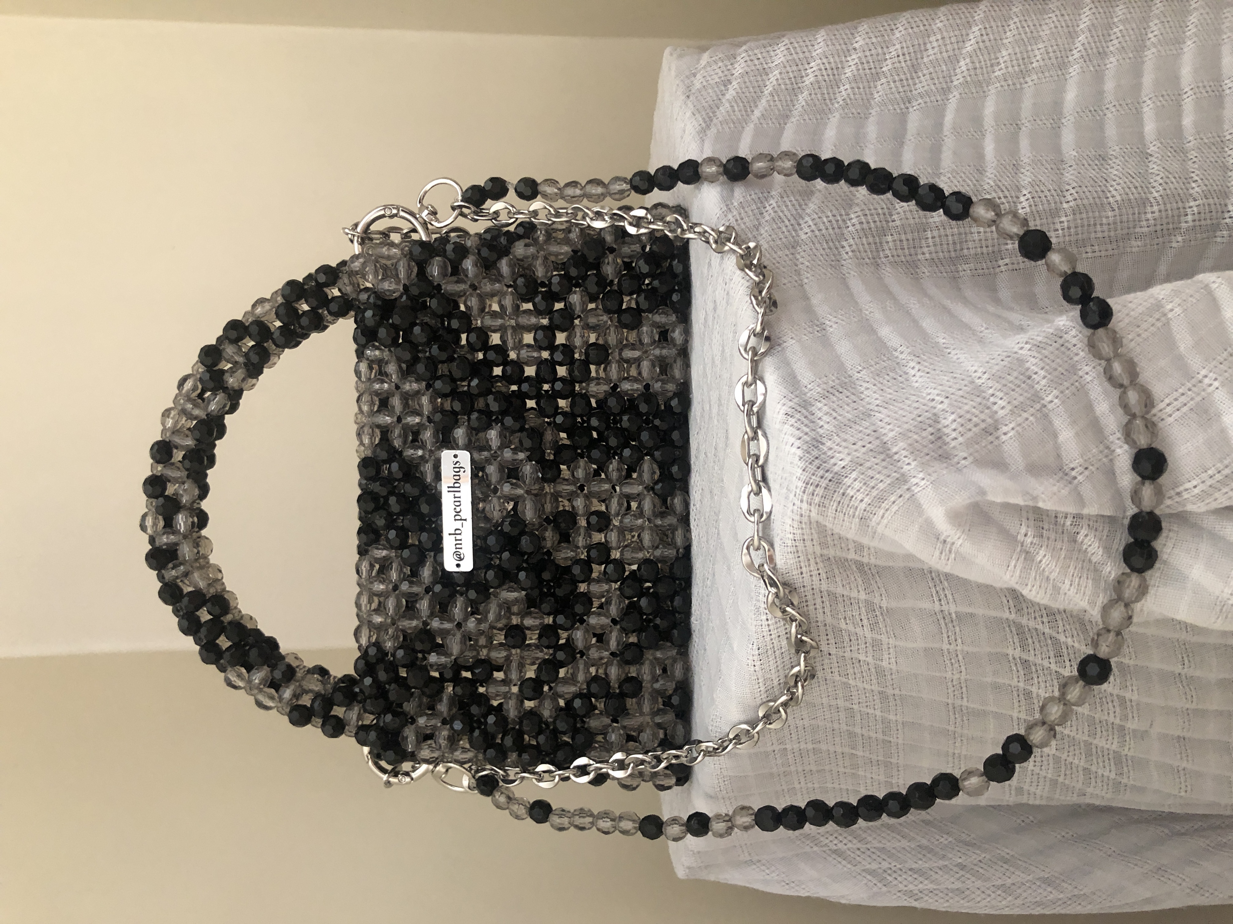 بافته شده با کریستال ایرانی جنس خوب/ دارای سه دسته مجزا برای کارایی بیشتر و راحتی در نگهداری کیف/کف کیف 3 سانت می باشد و مناسب کارت بانکی و ایرپاد و کلید و وسایل کوچک مشابه