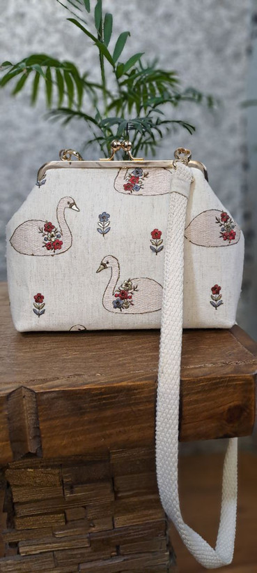 کیف پارچه ایی لنین سوزن دوزی شده طرح قو