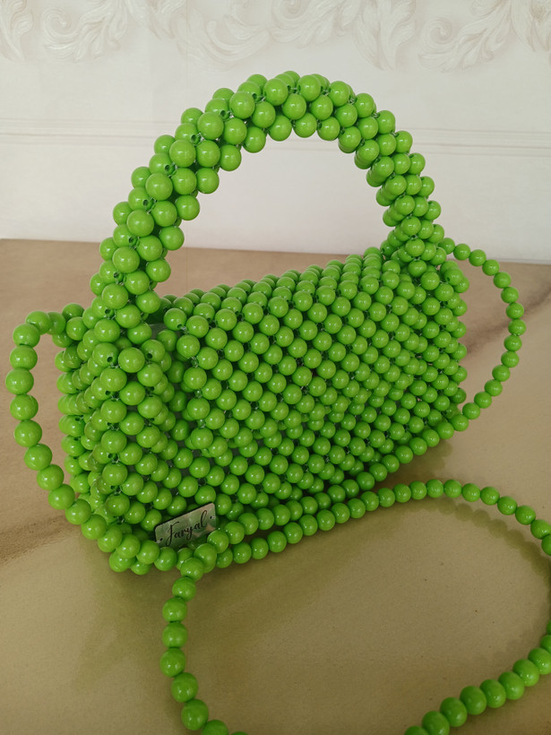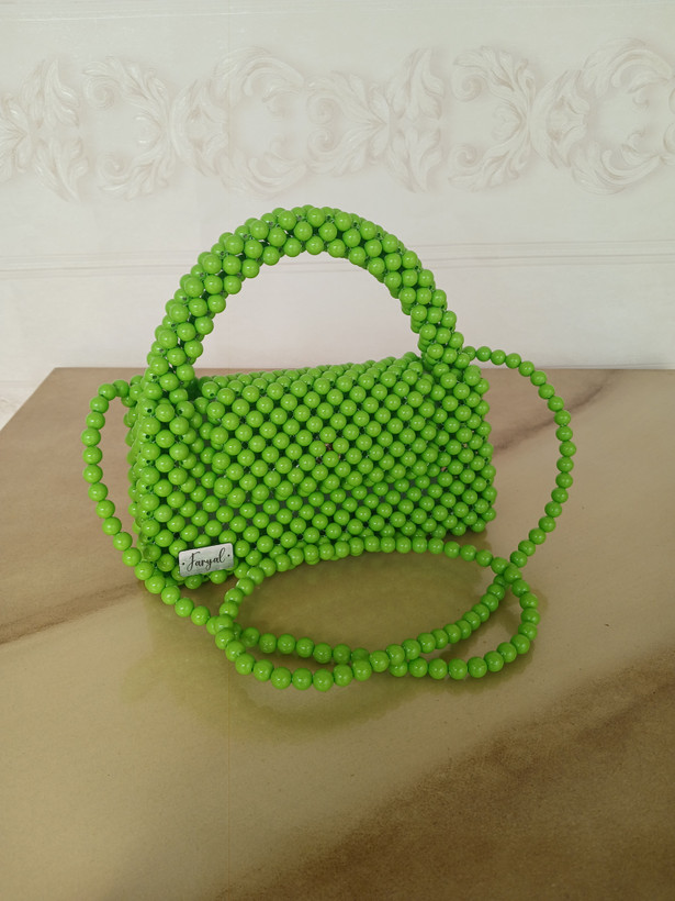 کیف مرواریدی_پلیمری زیبامون با ابعاد ۲۱ در ۱۲ و وزن حدودا ۵۰۰ گرم با ایستایی عالی مناسب برلی نگهداری موبایل و اشیا در حد موبایل و کوچکتر بدون آستری و ساخته شده از مروارید های پلیمری سبز