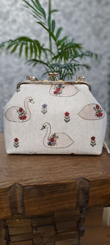 کیف پارچه ایی لنین سوزن دوزی شده طرح قو v8